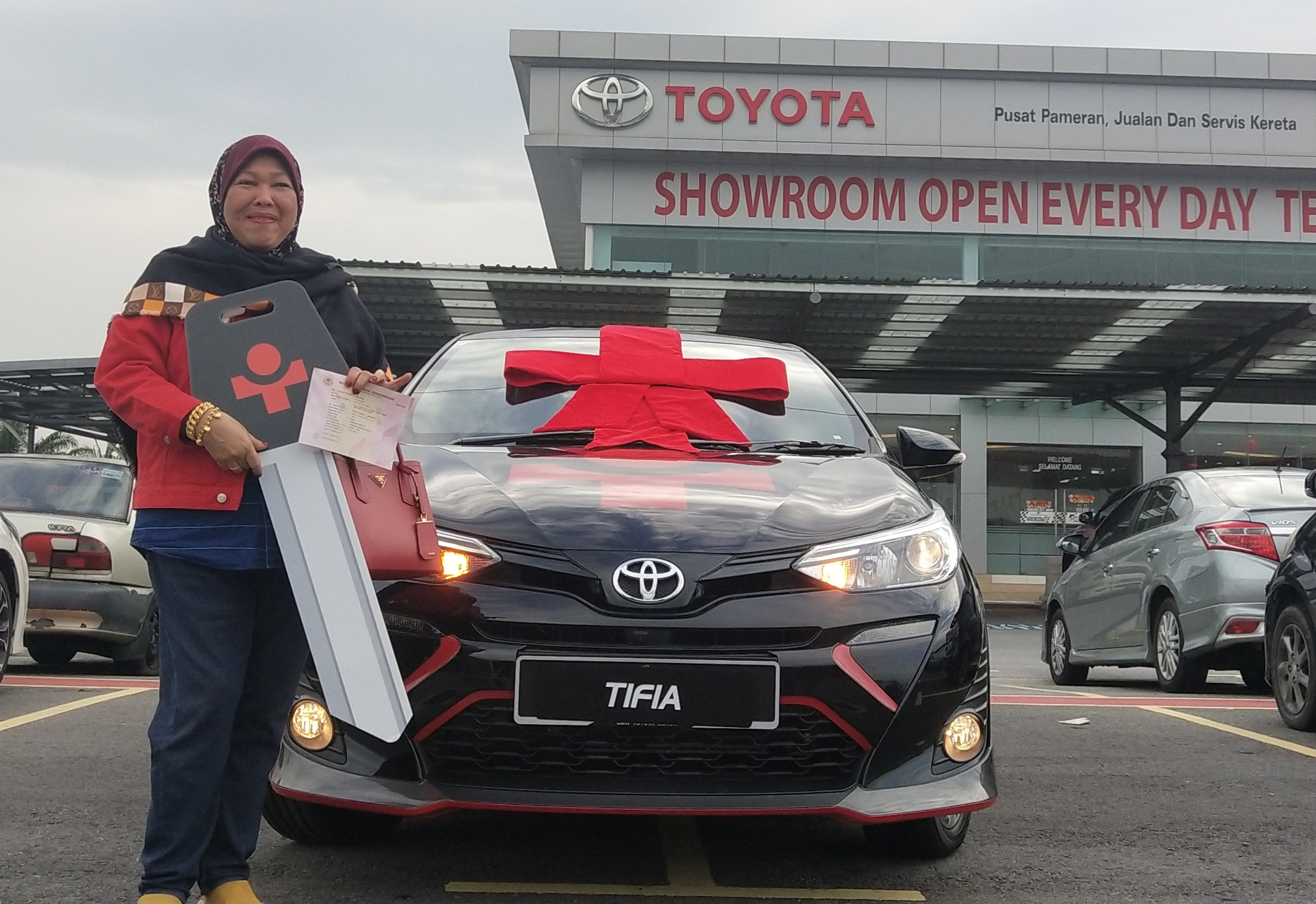 Tifia telah menyerahkan TOYOTA YARIS kepada pedagang Malaysia