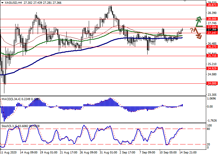 Untuk membuka posisi beli, satu penembusan boleh diharapkan iaitu pada paras 27.50. Take-profit – 28.50–28.87. Stop-loss – 26.90.