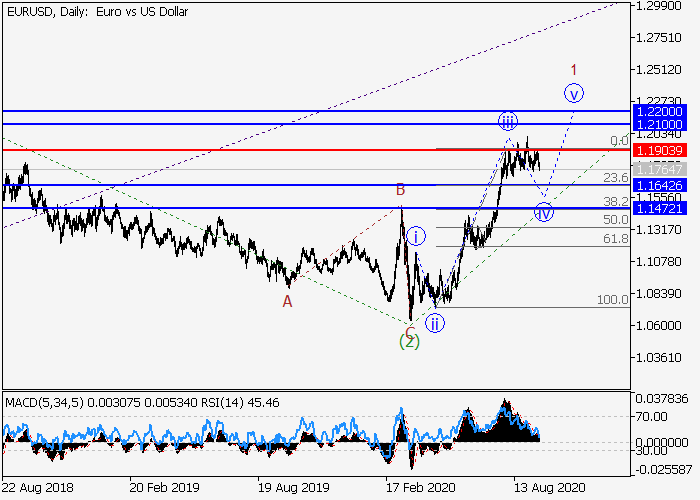 Posições curtas são relevantes a partir de correções, abaixo do nível de 1.1903 com metas de 1.1642–1.1472. Período de implementação: 7 dias ou mais.